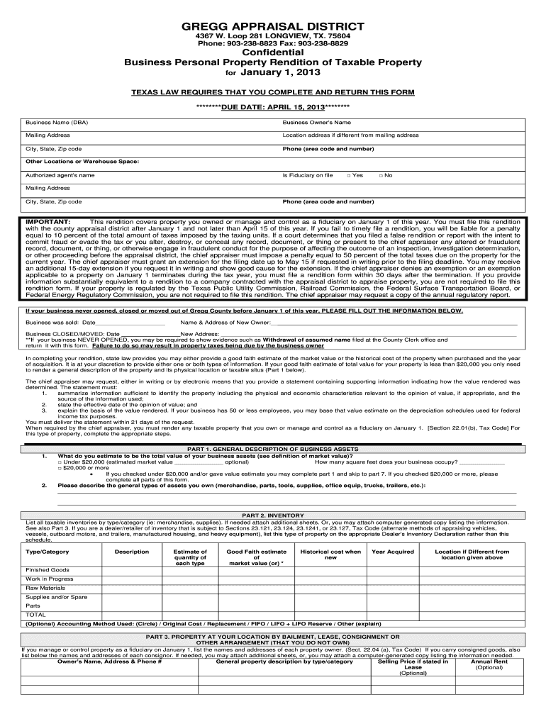 Information Required to Complete the Texas Business Personal Property Rendition Form