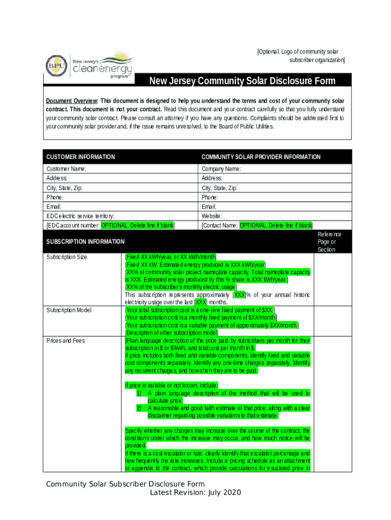 What is New Jersey Community Solar Disclosure Document ... Form?