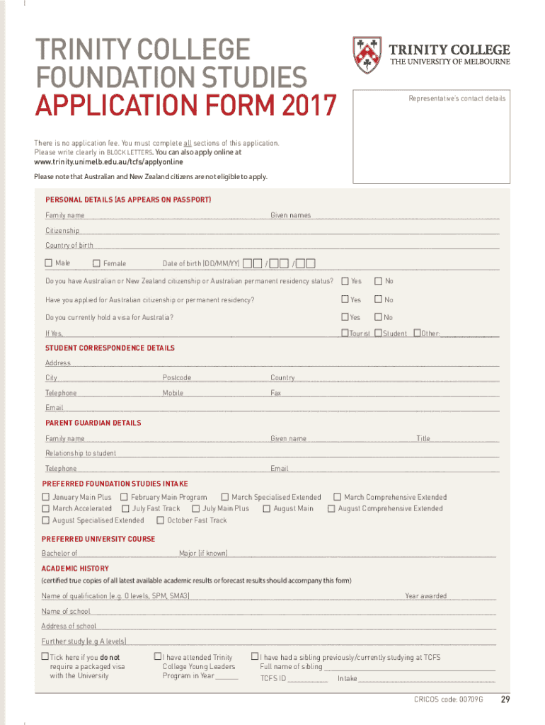 Trinity College Foundation Studies is not the form you're looking for?Search for another form here.