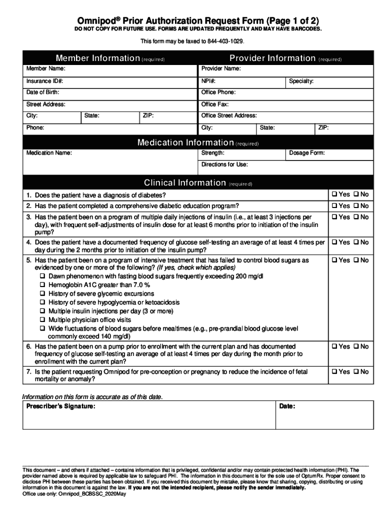 Get the free Omnipod Prior Authorization Request Form (Page 1 of 2)