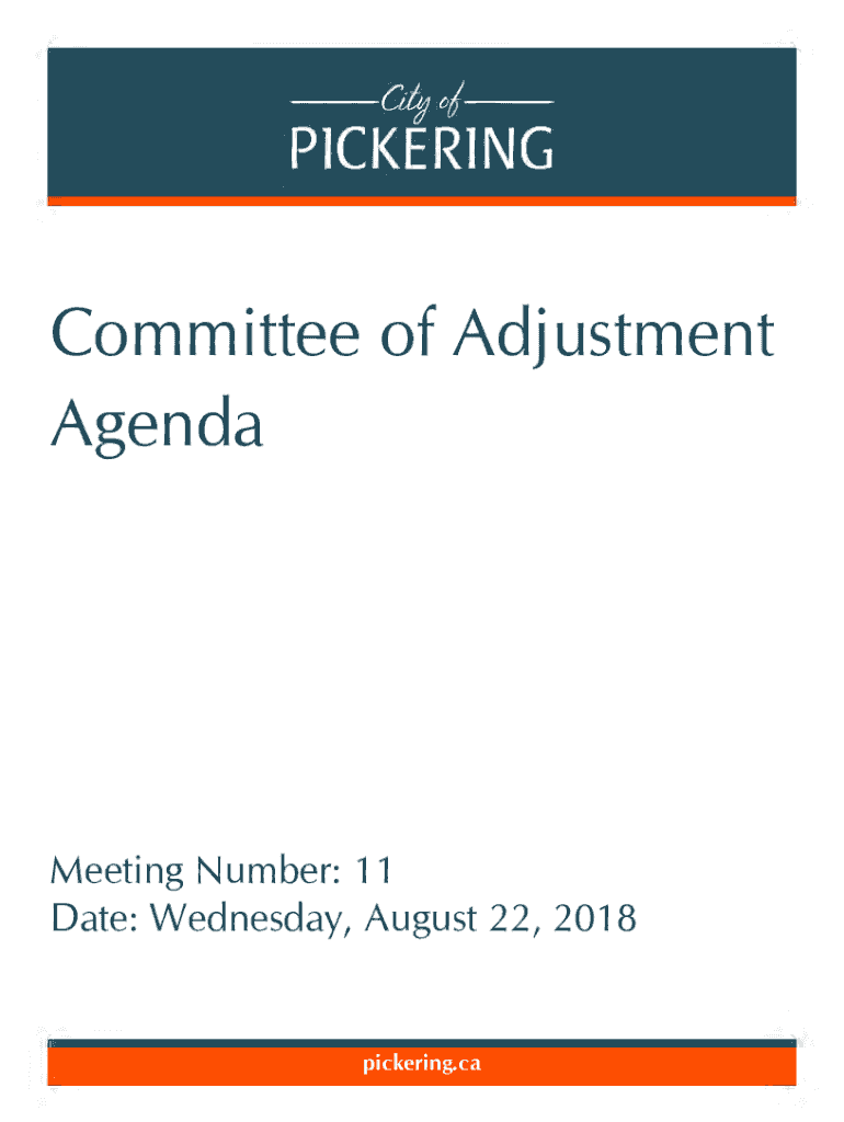 Committee of Adjustment AgendaMeeting Number: 11 Date: Wednesday, August 22, 2018pickering.caCt%tfp (KERJNGAgendaCommittee of Adjustment Wednesday, August 22, 2018 7:00 pm Council Chambers Page Number