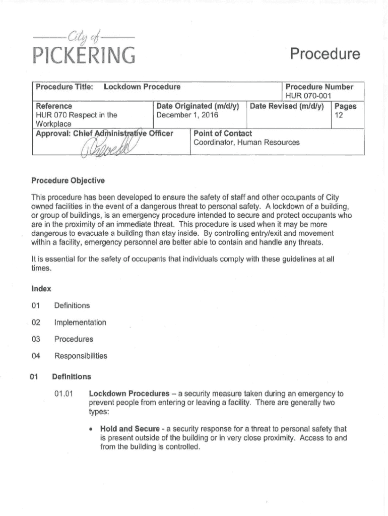 Get the free HUR070-001 Lockdown ProcedureIcon - City of Pickering