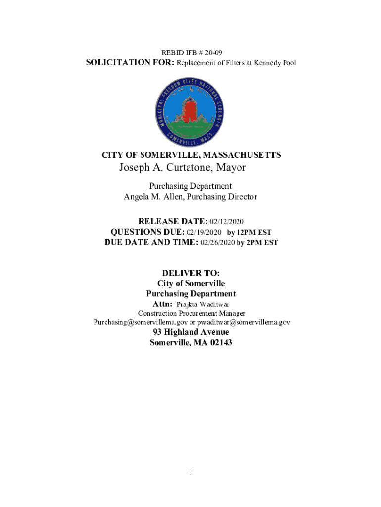 Get the free Somerville REBID IFB 20-09 Replacement of Filter at Kennedy Pool Final