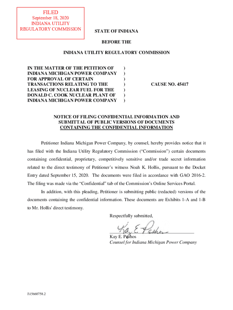 Get the free Notice of Filing of Confidential Information and Submittal of Public ...