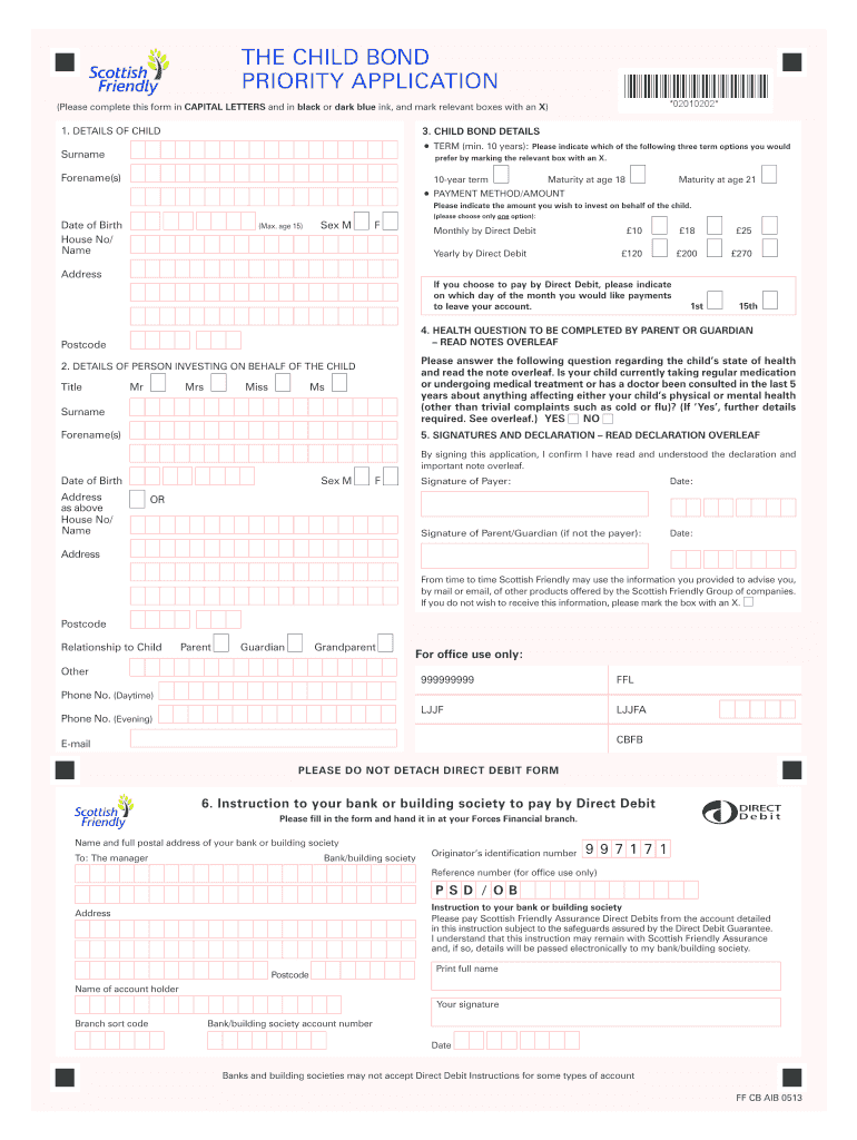 SF-2225 FORCES FINANCIAL CHILD BOND APP:55542 CB Apply IB 4pp (ii) 19/04/2013 15:26-Page 1 THE CHILD BOND PRIORITY APPLICATION (Please complete this form in CAPITAL LETTERS and in black or dark blue