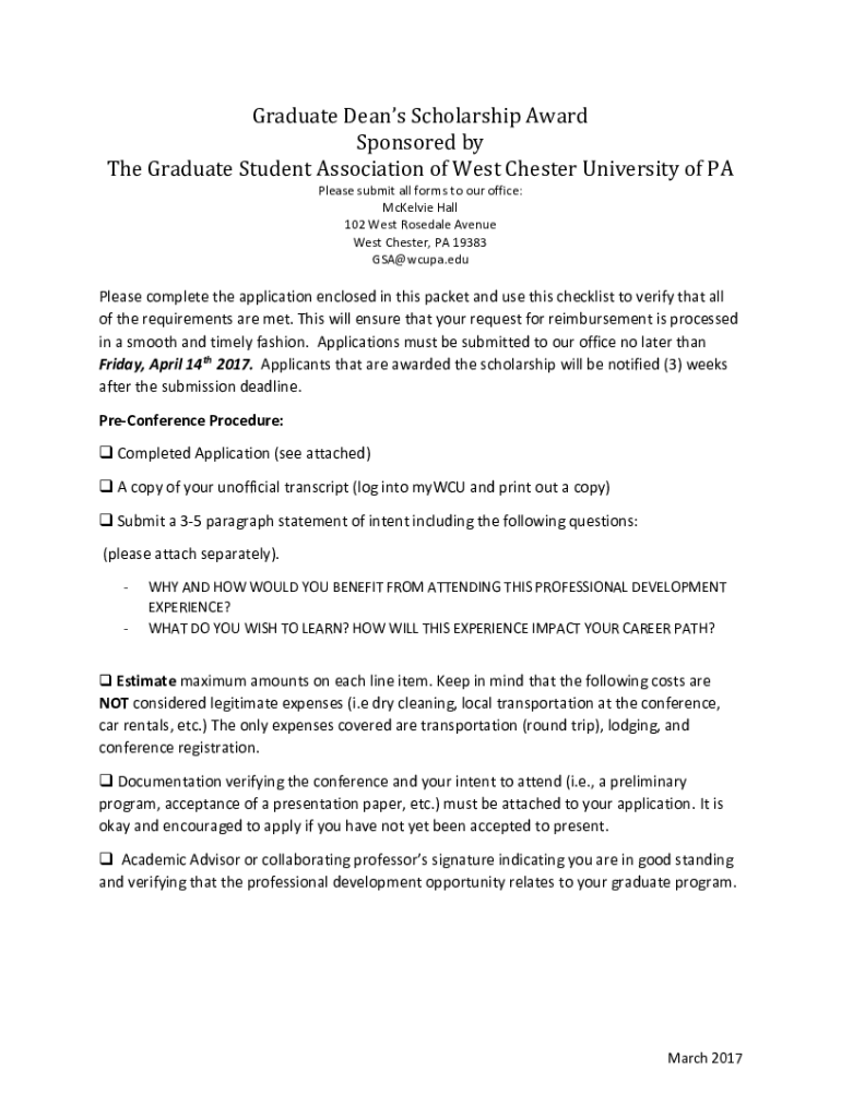 Get the free Graduate Dean's Scholarship Award Sponsored by The ...