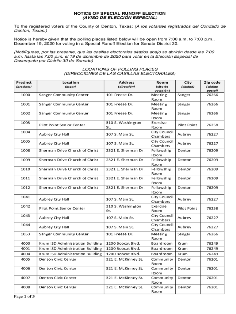 To the registered voters of the County of Denton, Texas: (A Los rotates registrants Del Condado de