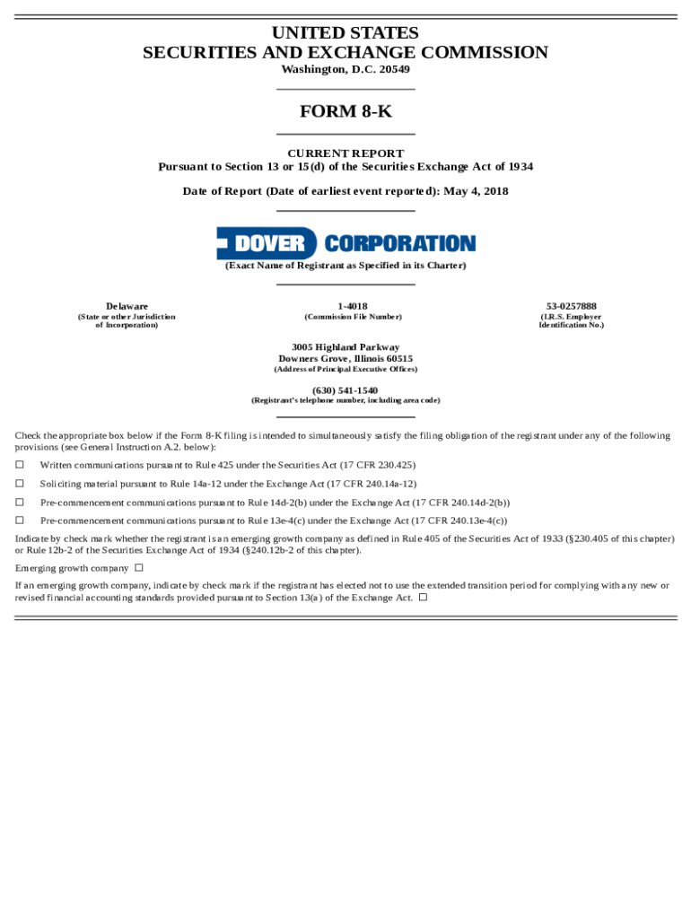 Get the free united states securities and exchange commission form 8-k - Dover ...