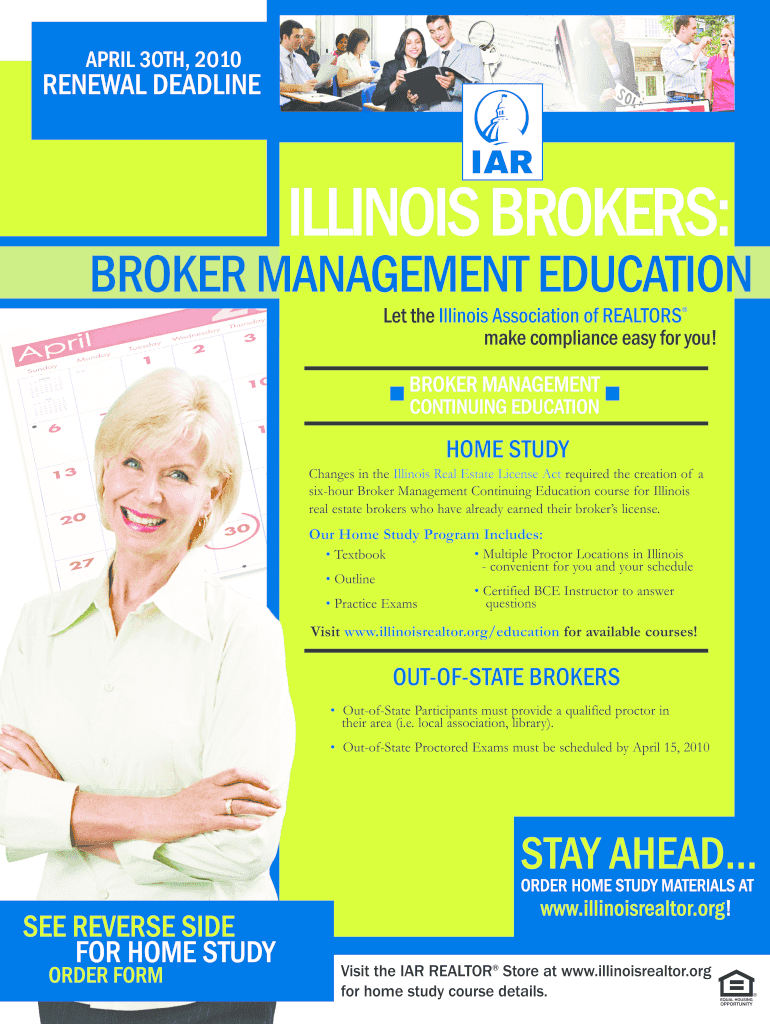 Get the free Illinois Broker Management CE Home Study Order Form