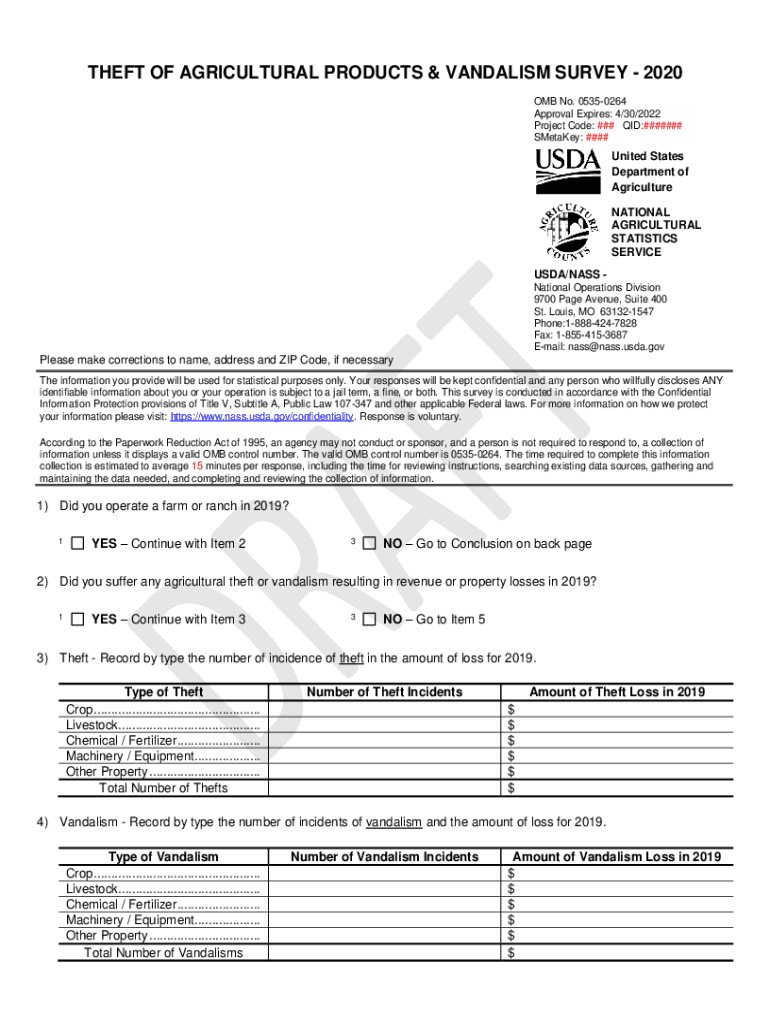 Get the free Theft of Agricultural Products & Vandalism Survey - 2020