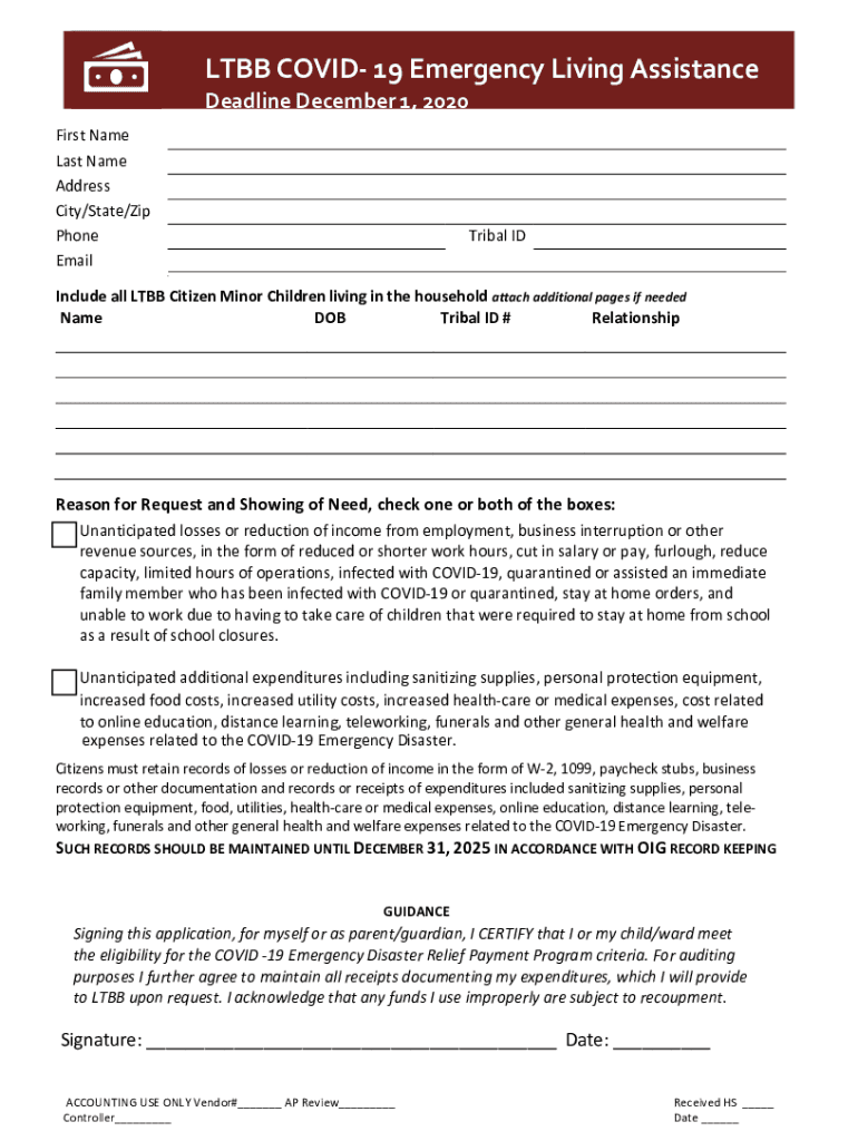 Get the free LTBB COVID- 19 Emergency Living Assistance