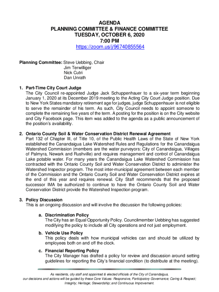 AGENDA PLANNING COMMITTEE & FINANCE COMMITTEE TUESDAY, OCTOBER 6, 2020 7:00 PM https://zoom.us/j/96740855564 Planning Committee: Steve Webbing, Chair Jim Terwilliger Nick Cut Dan Wrath 1. Maritime