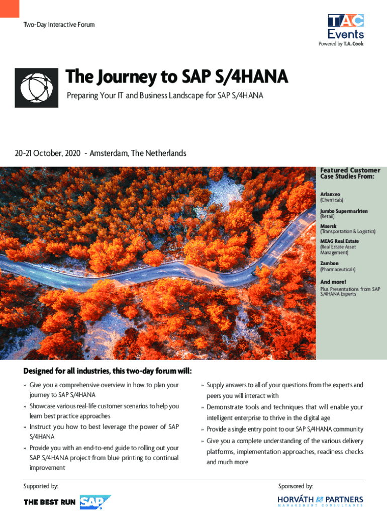 Today Interactive Forsythe Journey to SAP S/4HANA Preparing Your IT and Business Landscape for SAP S/4HANA2021 October 2020 Amsterdam, The Netherlands Featured Customer Case Studies From: Arranged
