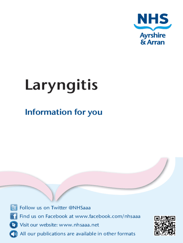 Laryngitis Information for follow us on Twitter NASA Find us on Facebook at www.facebook.com/nhsaaa Visit our website: www.nhsaaa.net All our publications are available in other formatsIntroduction