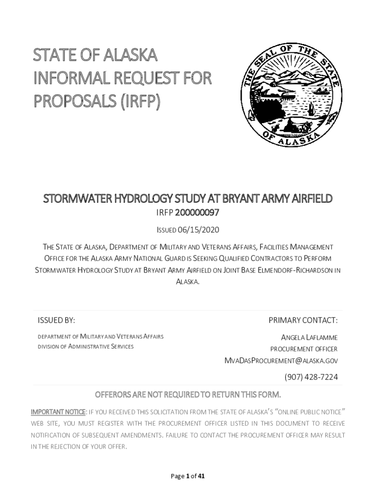 PROPOSALS (IFP)STORMWATER HYDROLOGY STUDY AT BRYANT ARMY AIRFIELD
