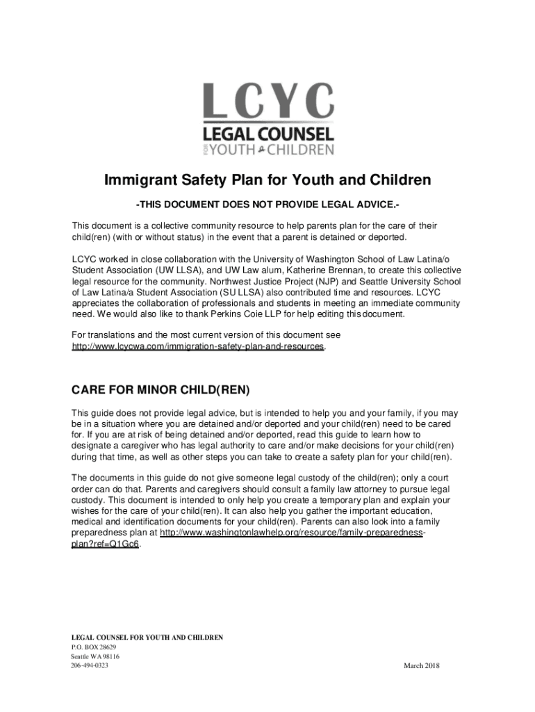 Get the free Immigrant Safety Plan for Youth and Children - mt-ural.ru