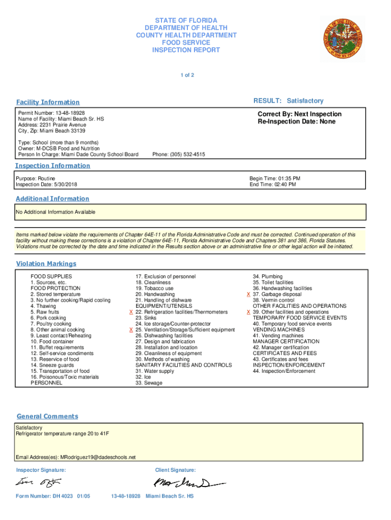 INSPECTION REPORT1 of 2RESULT: SatisfactoryFacility Information
