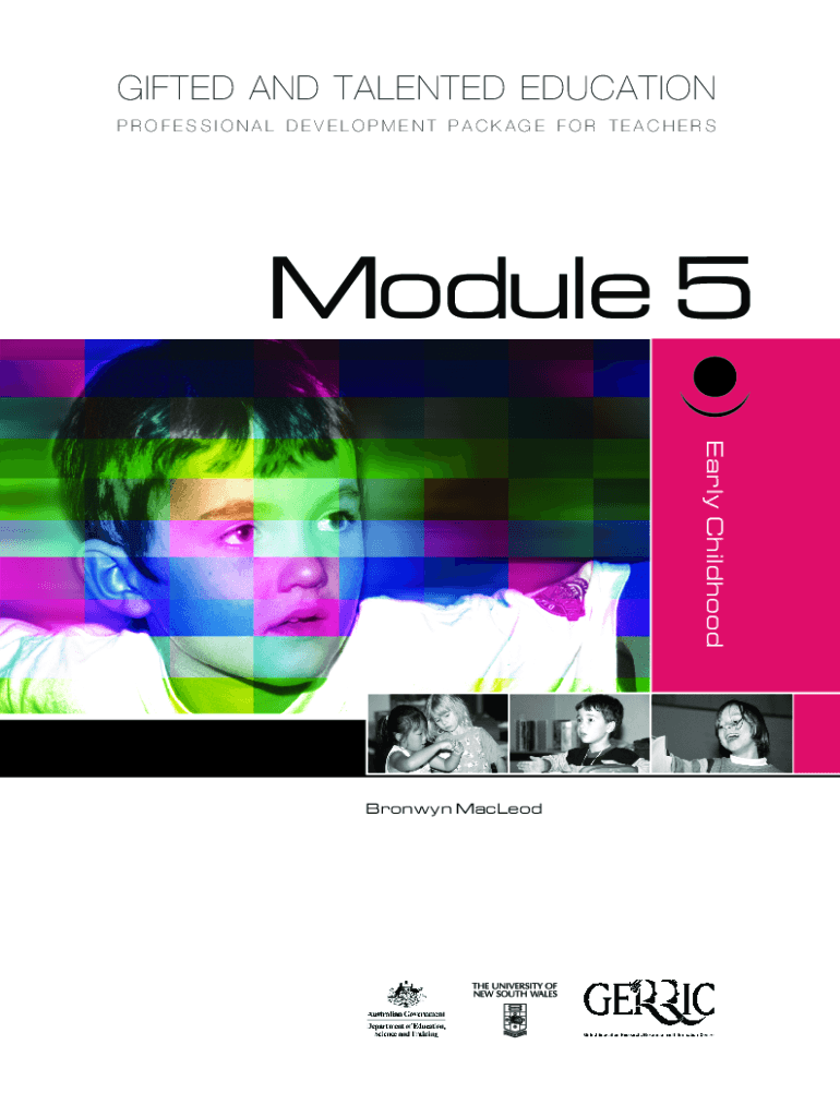 GIFTED AND TALENTED EDUCATION PROFESSIONAL DEVELOPMENT PACKAGE FOR TEACHERSModule 5 Early ChildhoodBronwyn MacLeodISBN 0 642 77487 0 2004 Department of Education, Science and Training 2004 Gifted