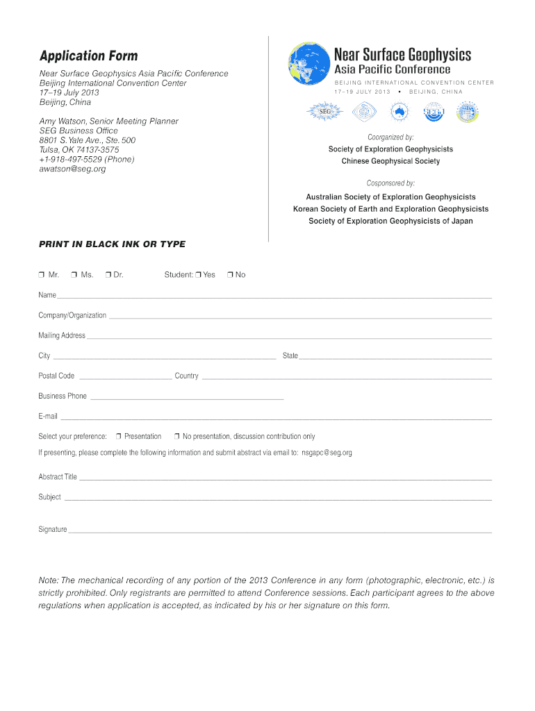 Near Surface Geophysics B E I J I N G I N T E R N AT I O N A L C O N V E N T I O N C E N T E R 1 7 1 9 J U LY 2 0 1 3 BEIJING, CHINA The continuing growth in influence of near surface geophysics has