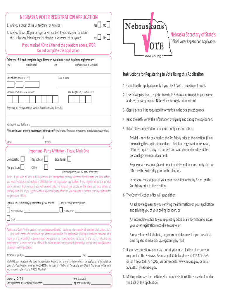 Eligible individuals who have never registered to vote in Nebraska or have recently moved to a different county within the state should fill out the application to update their voter registration information.