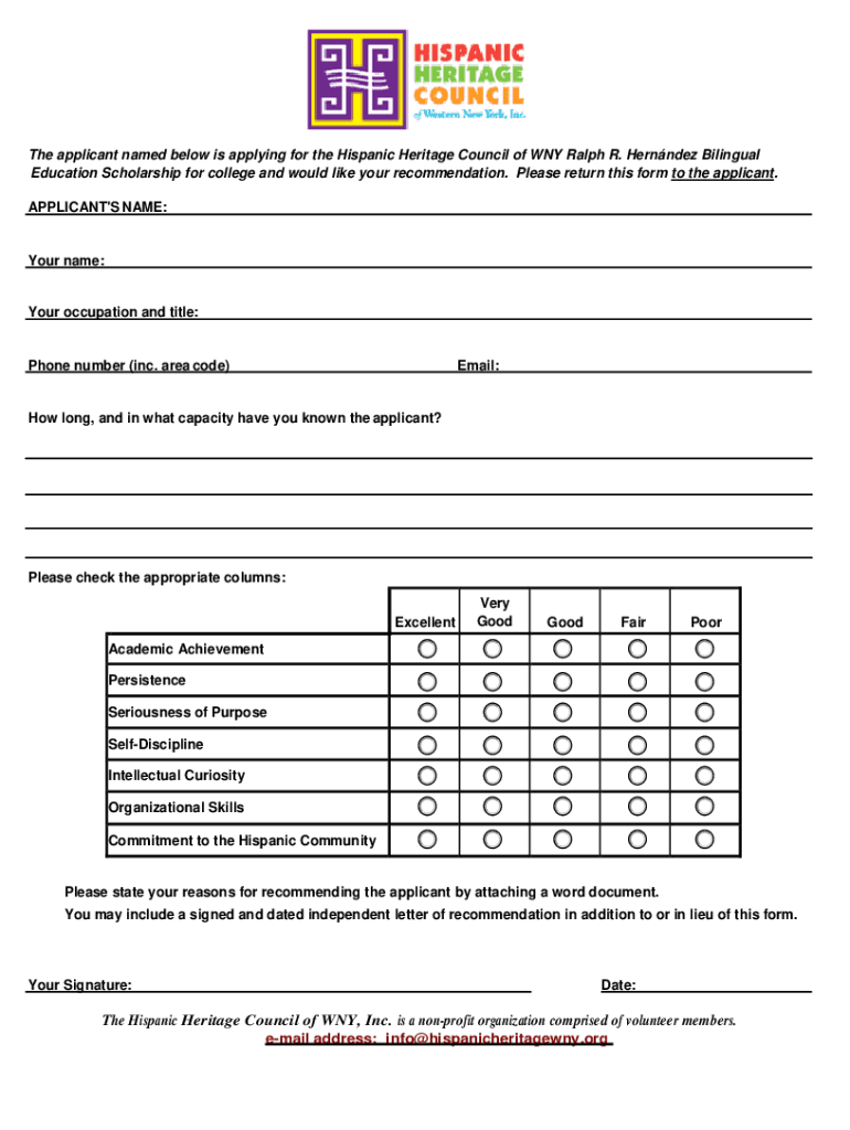 Hispanic Heritage Council Scholarship is not the form you're looking for?Search for another form here.