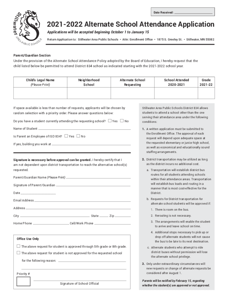 StillwaterENROLLMENT OFFICE 1875 South Greeley Street Stillwater, Minnesota 55082AREA PUBLIC Schools:Tel: 651.351.8412 fax: 651.351.8370www.stillwaterschools.orgParents/Guardians of Students Contemplating