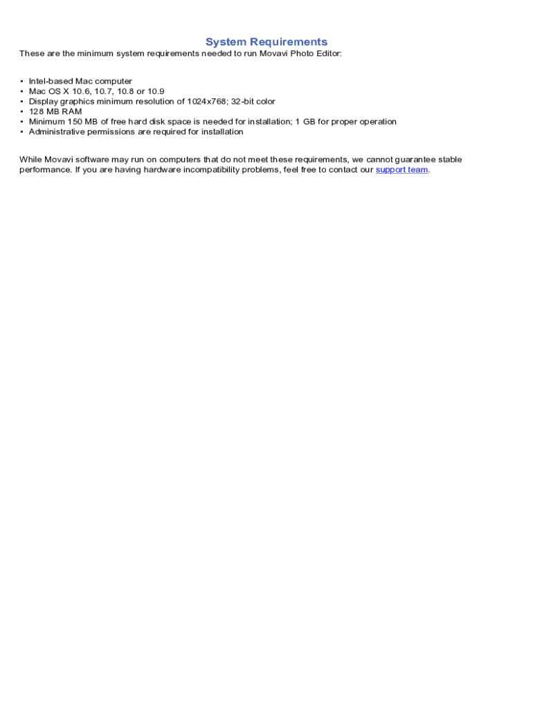 Fill out your system requirements - movavi online with pdfFiller!
