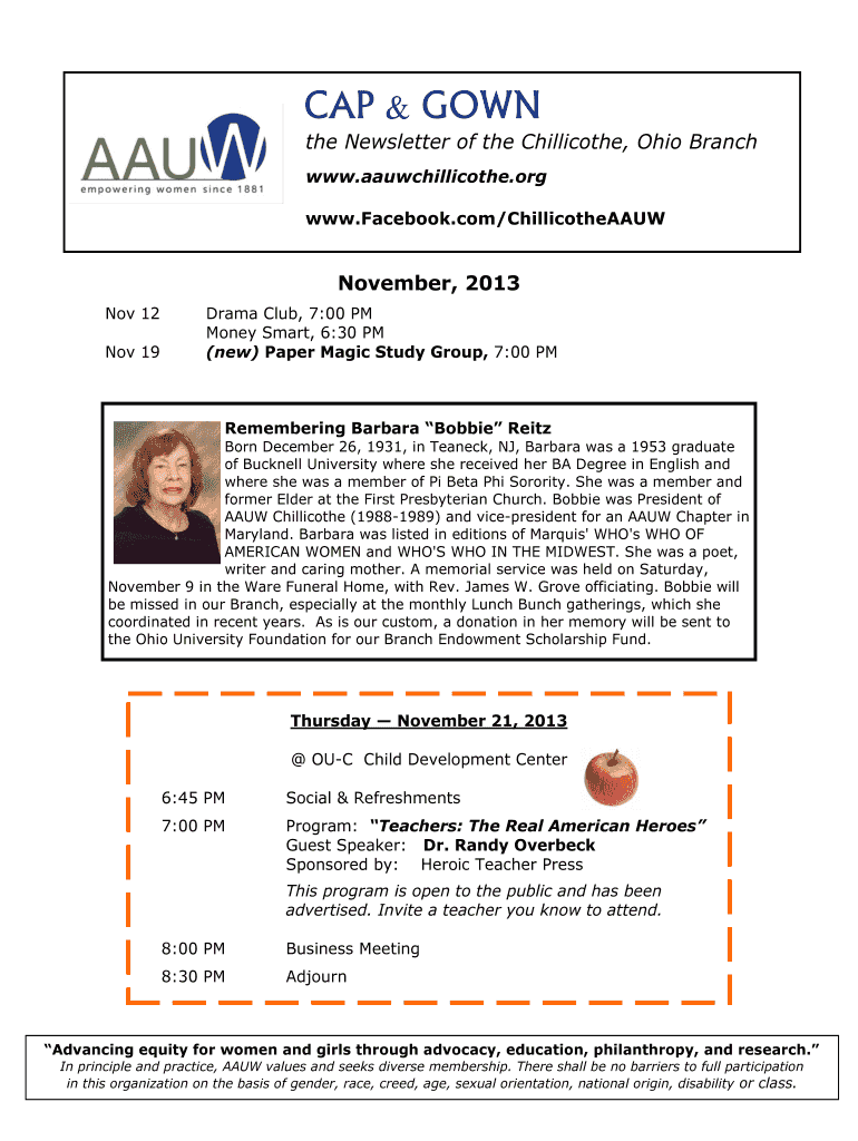 Get the free November Cap amp Gown - AAUW Chillicothe OH Branch - chillicothe-oh aauw
