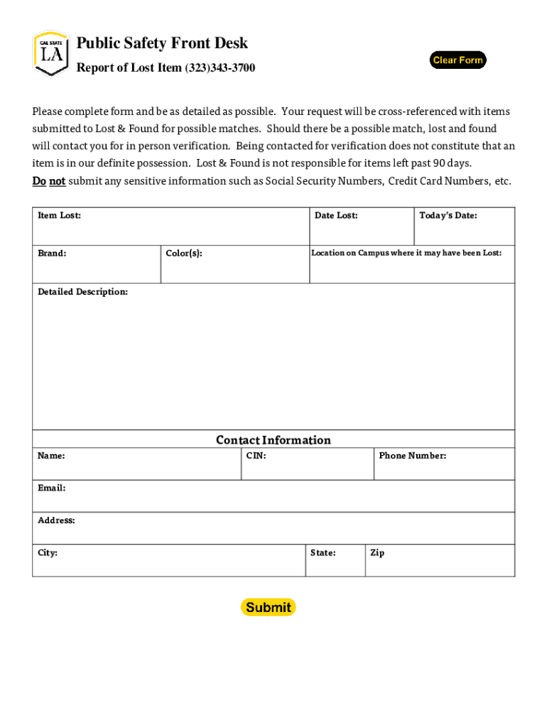 Get the free Report of Lost Item (323)343-3700 - Cal State LA