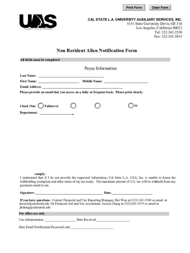 Get the free Non Resident Alien Notification Form - Cal State LA