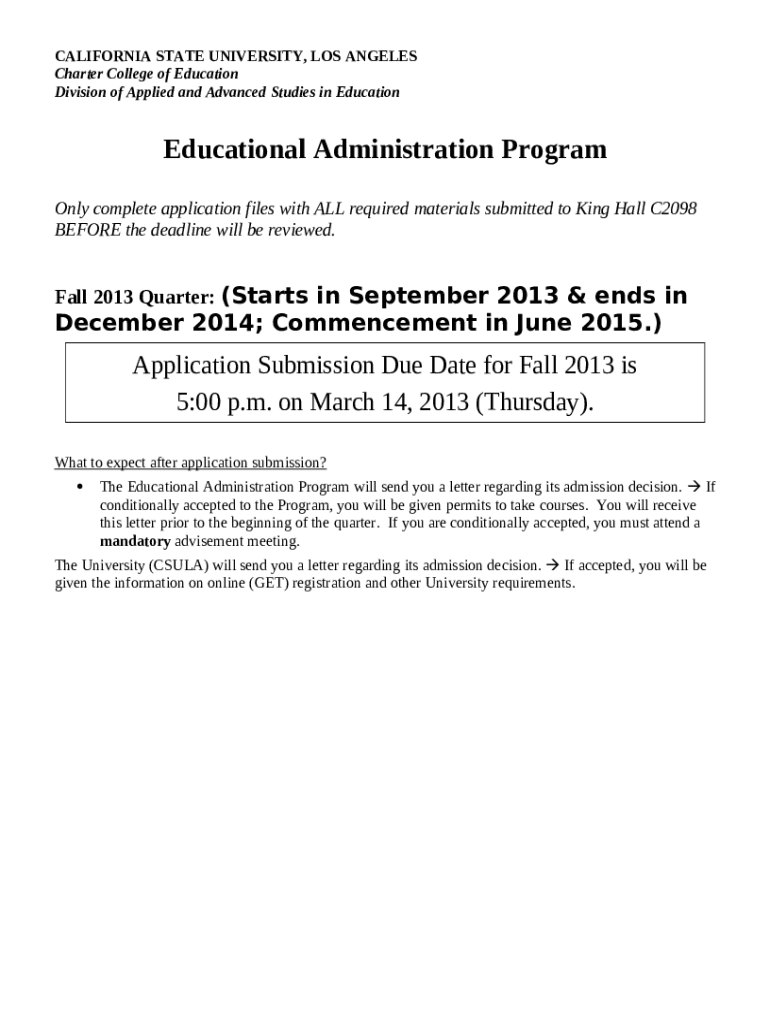What is programs in the Charter College of Education at ... - Cal State LA Form?