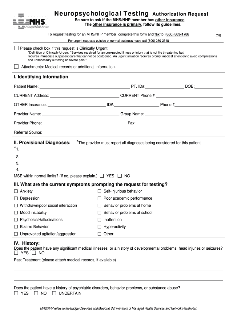 How to fill out neuropsychological testing authorization request