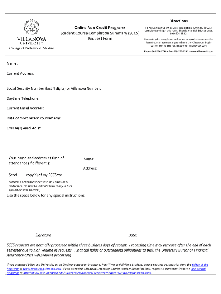 Directions Online Noncredit Programs Student Course Completion Summary (CCS) Request Form requests a student course completion summary (CCS), complete and sign this form. Then fax to Risk Education