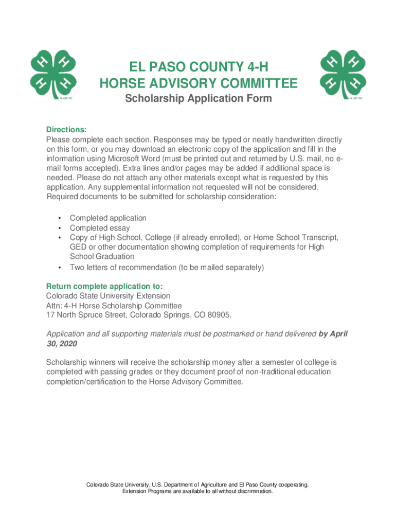 Get the free Online elpasoco colostate 4H horse scholarship modified ...