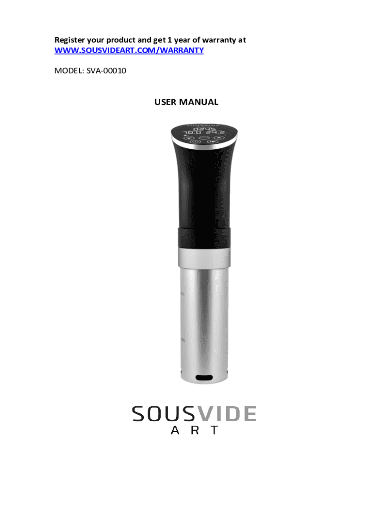 MODEL: SVA00010USER MANUALIMPORTANT SAFEGUARDS