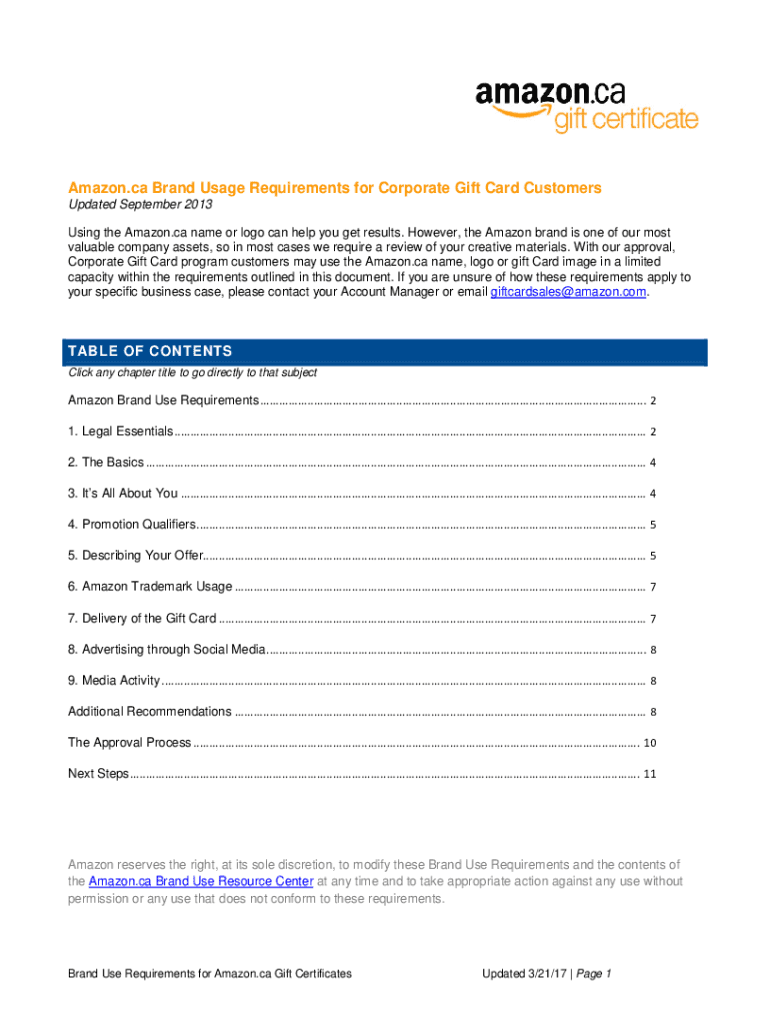 Amazon.ca Brand Usage Requirements for Corporate Gift Card Customers