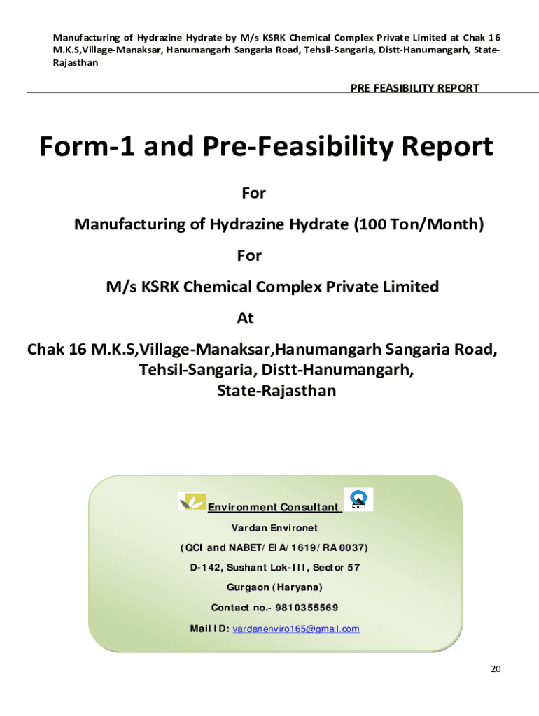 Form-1 And Pre-Feasibility Report is not the form you're looking for?Search for another form here.
