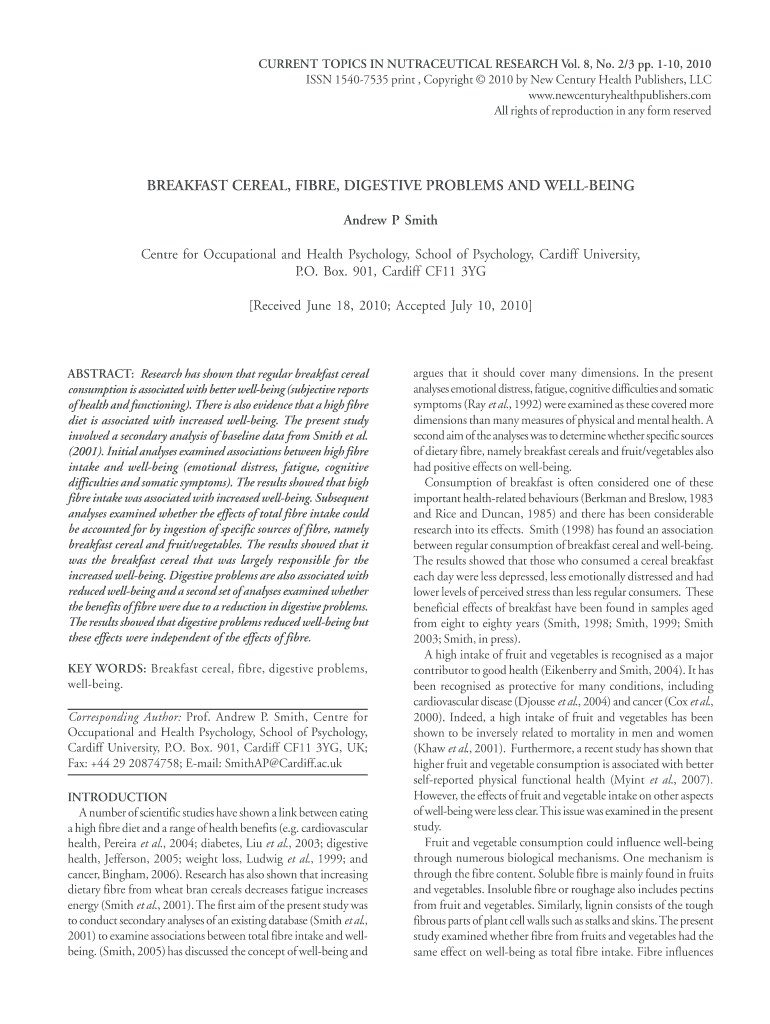 Get the free Breakfast cereal fibre digestive problems and well-being - School of bb - psych cf ac
