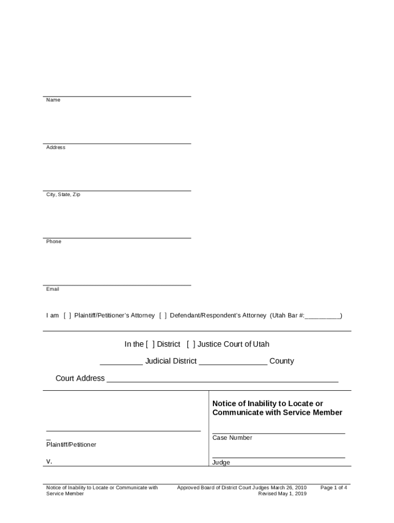 What is Notice of Inability to Locate or Communicate with Service ... Form?