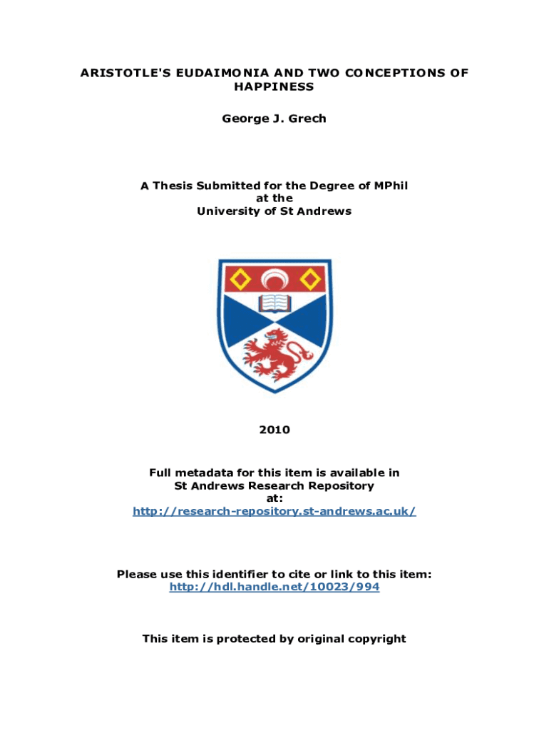Fill out your aristotles eudaimonia and two online with pdfFiller!
