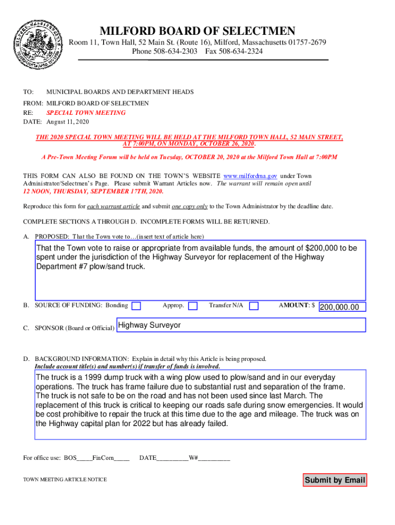 Phone 5086342303 Fax 5086342324TO:MUNICIPAL BOARDS AND DEPARTMENT HEADROOM: MILFORD BOARD OF