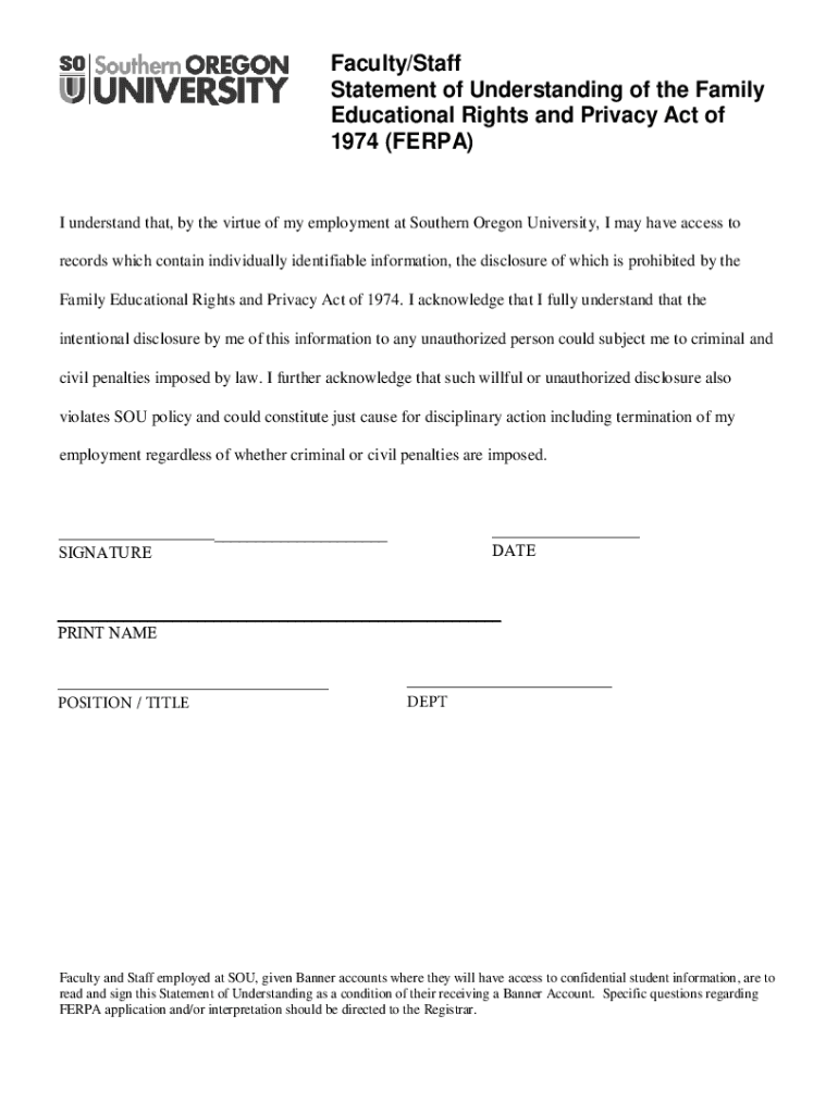 Get the free Faculty Staff FERPA Agreement - Southern Oregon University - inside sou