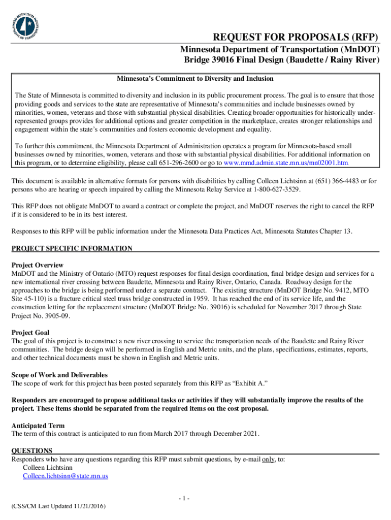 Get the free Bridge 39016 Final Design (Baudette / Rainy River)