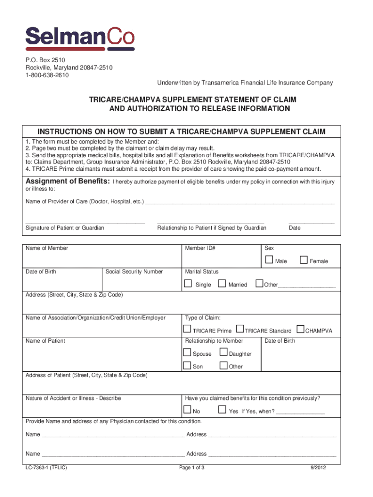 Get Started with Your TRICARE/CHAMPVA Supplement Statement of Claim and Authorization Today