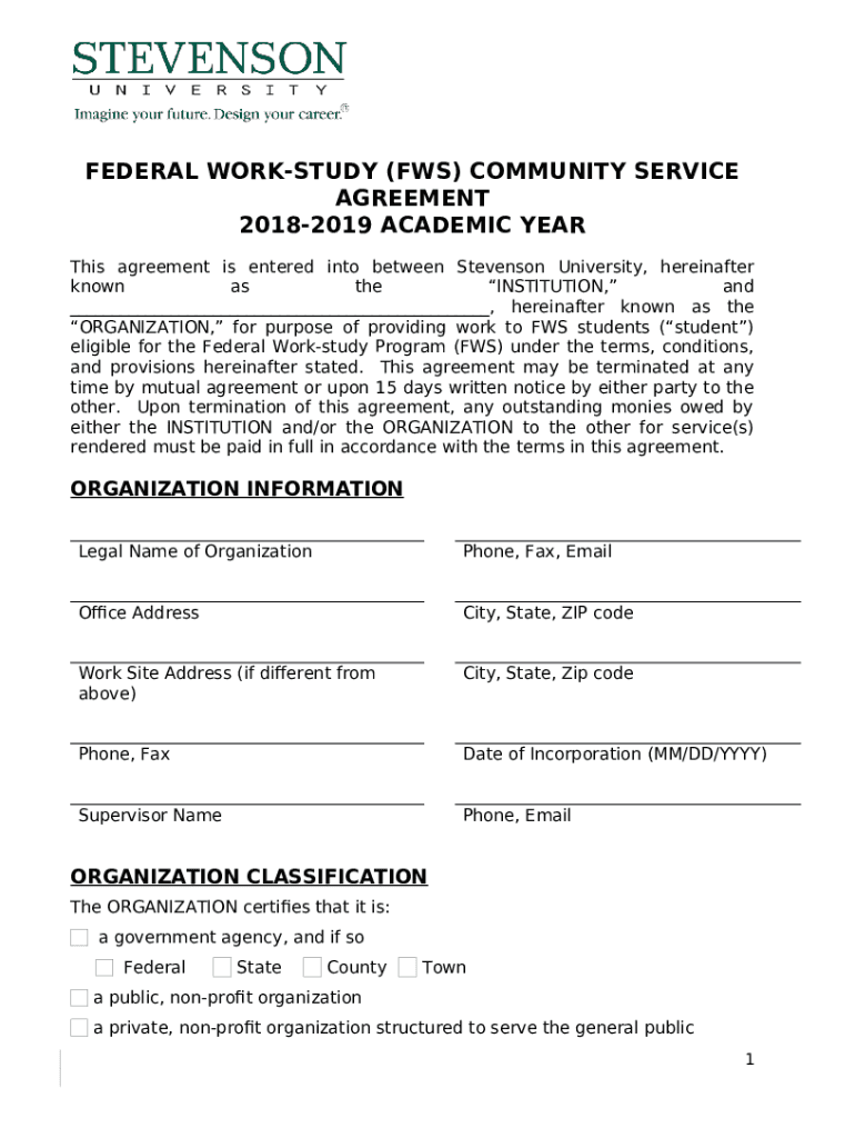 How to fill FEDERAL WORK-STUDY (FWS) COMMUNITY SERVICE AGREEMENT word template