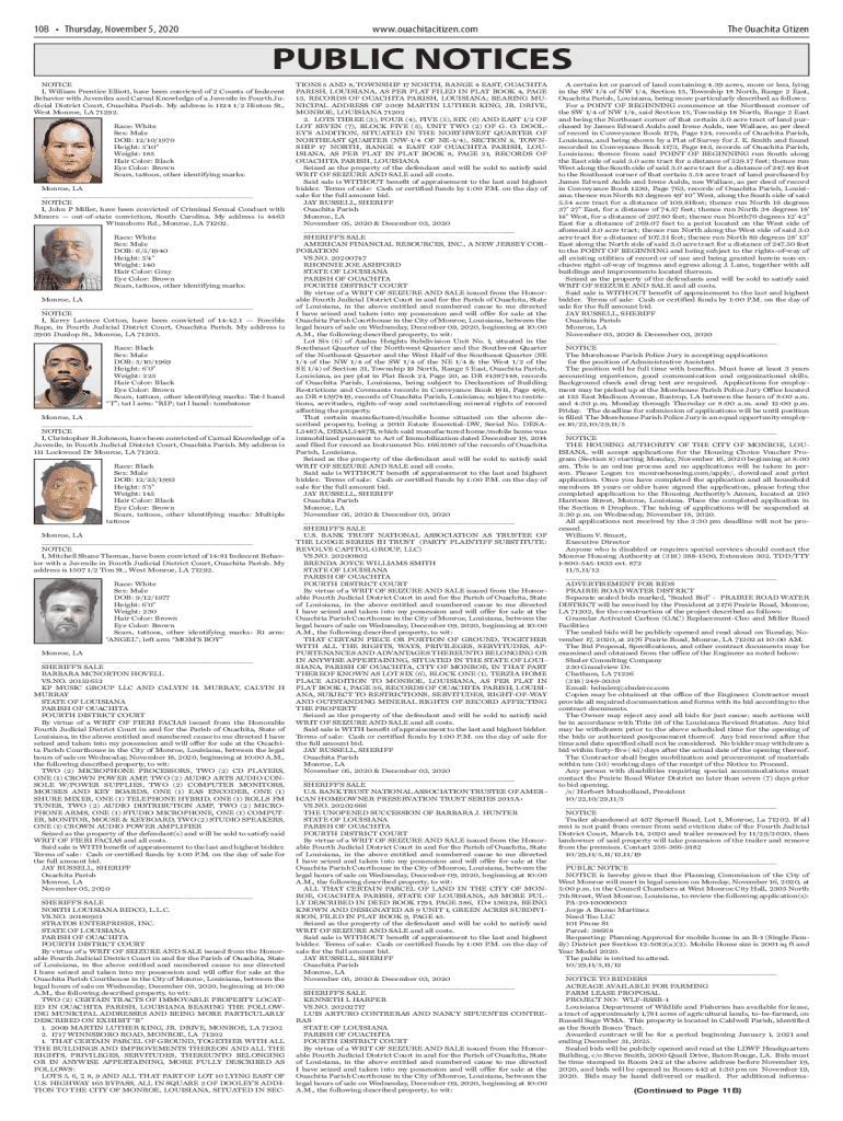 10B Thursday, November 5, 2020www.ouachitacitizen. Comte Wichita CitizenPUBLIC NOTICES NOTICE I, William Prentice Elliott, have been convicted of 2 Counts of Indecent Behavior with Juveniles and Carnal