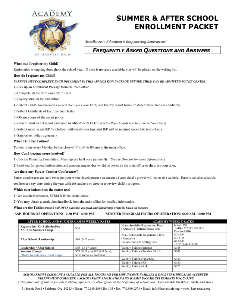 SUMMER & AFTER SCHOOL ENROLLMENT PACKET Excellence in Education & Empowering GenerationsFREQUENTLY ASKED QUESTIONS AND ANSWERS When can I register my Child? Registration is ongoing throughout the