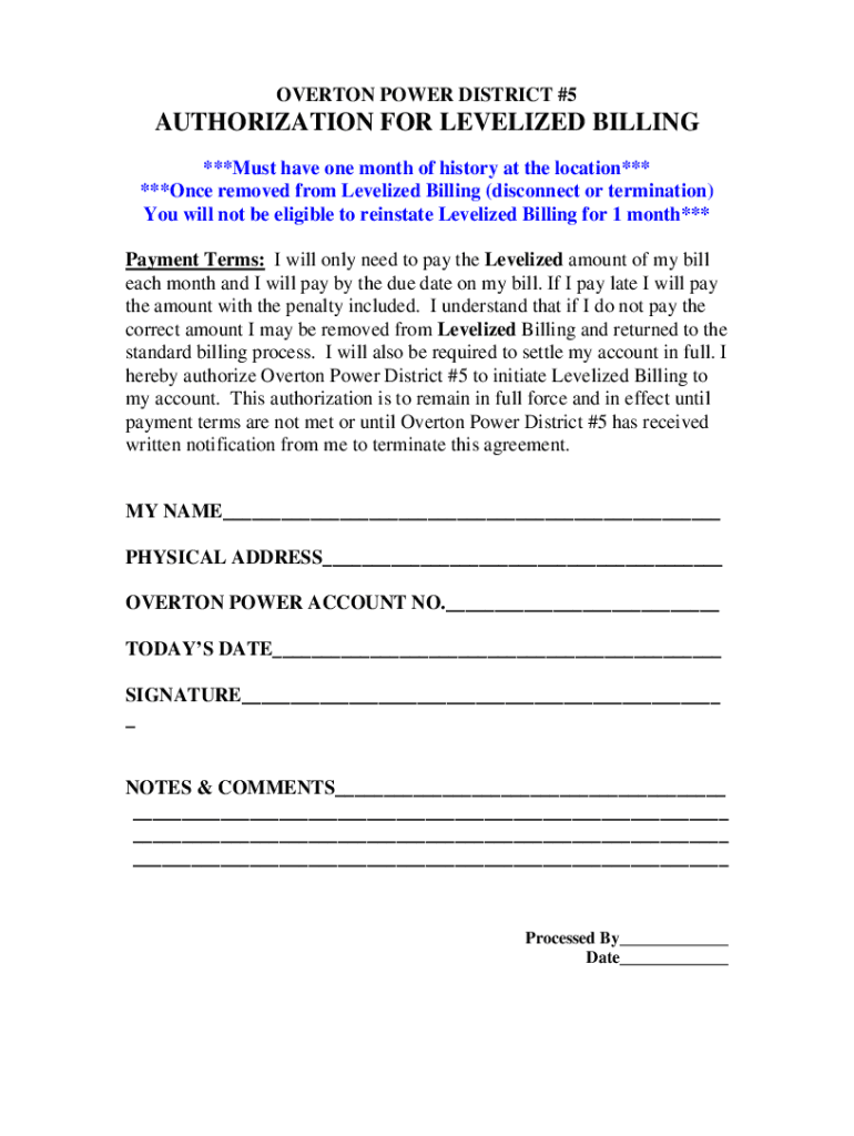OVERTON POWER DISTRICT #5AUTHORIZATION FOR LEGALIZED BILLING