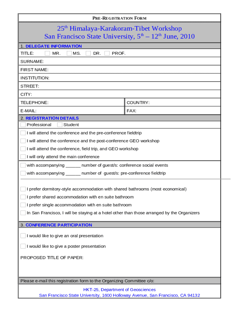 What is 25th Himalaya-Karakoram-Tibet Workshop - online sfsu Form?