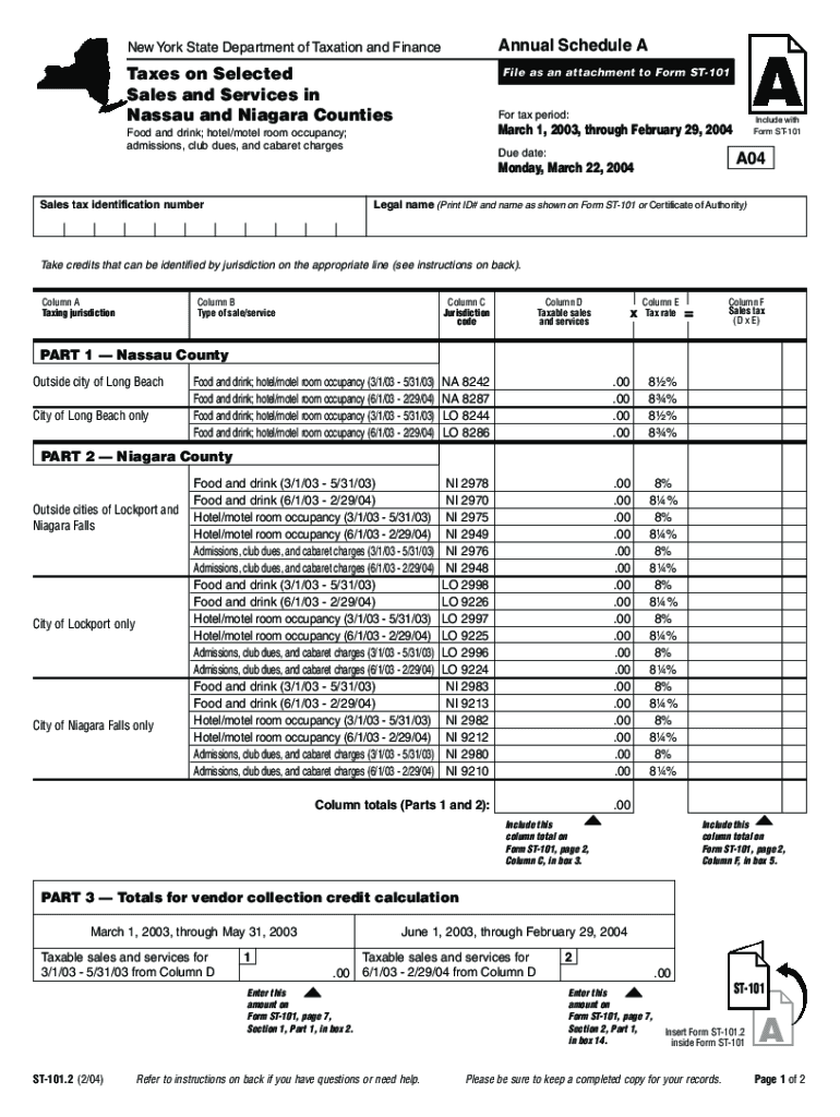Nassau and Niagara CountiesFile as an attachment to Form ST101For tax period: